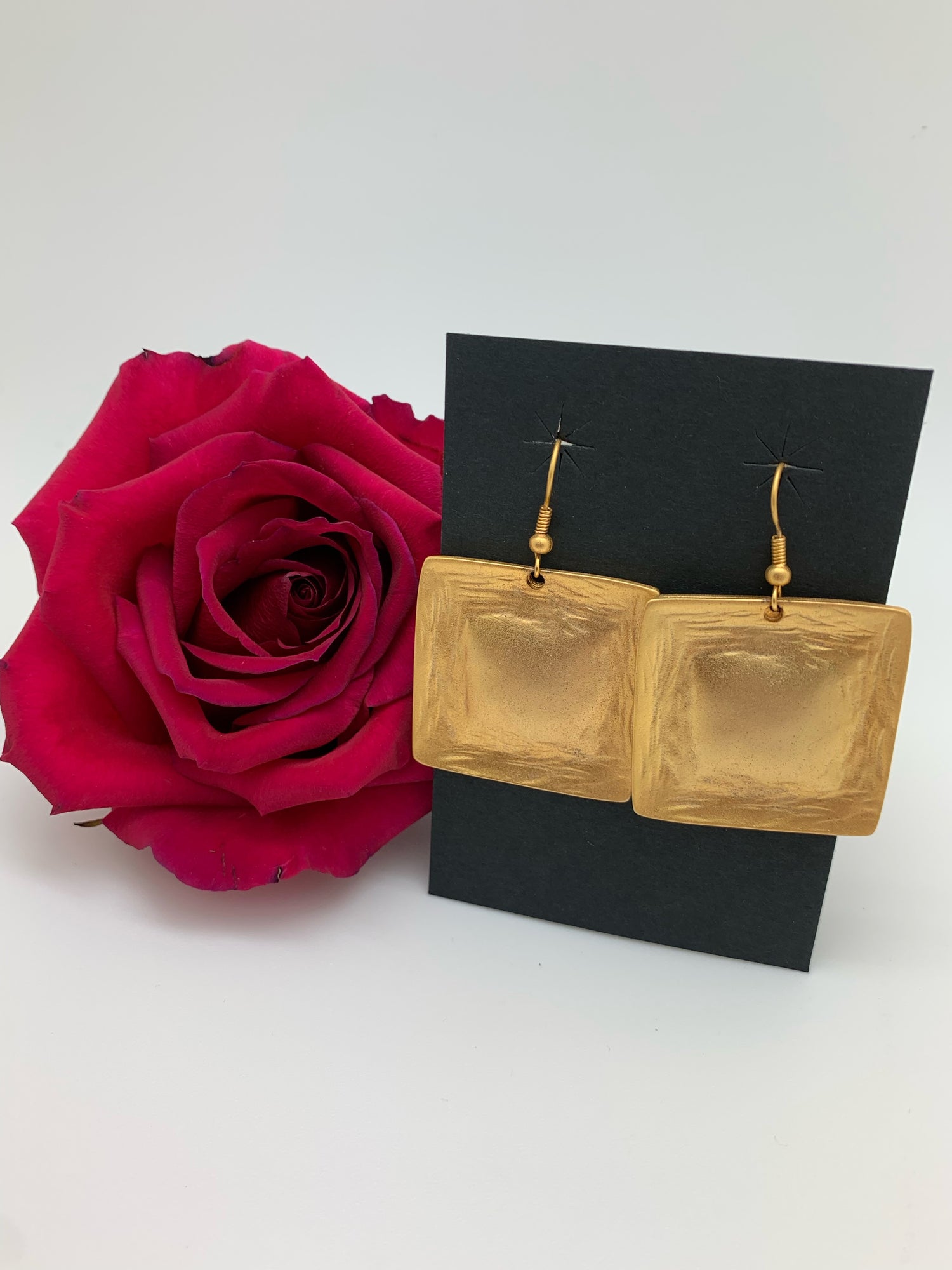 Gold tone square earrings